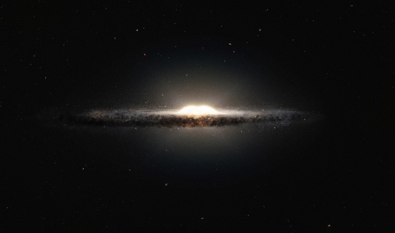 Du kan tenke på Melkeveien som en CD med en bomullsdott i hullet i midten. Galaksen er en hovedsakelig flat form og i midten er det en tett ball som kalles «galaksebulen». Det er faktisk et ganske lite område som inneholder rundt 10 000 millioner stjerner! Det er en av de eldste og mest imponerende delene av galaksen, men den er ikke særlig godt forstått frem til nå.