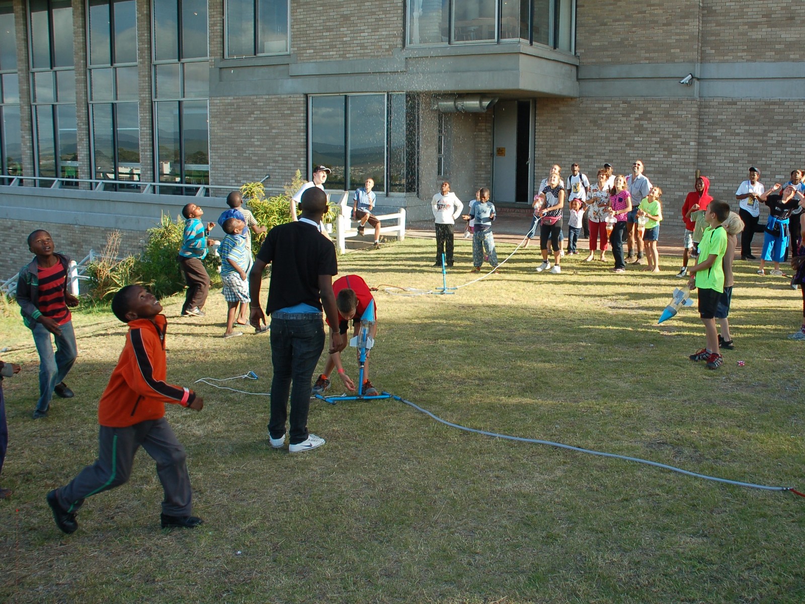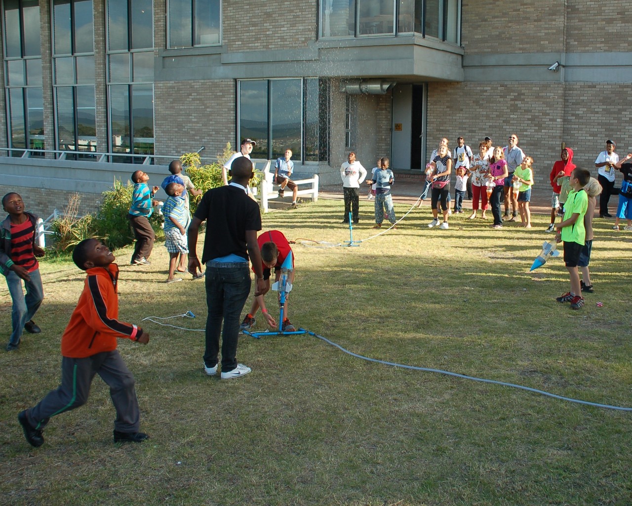 Children launch pop-rockets during the EU-UNAWE Rocket Science workshop at Scifest 2013.
