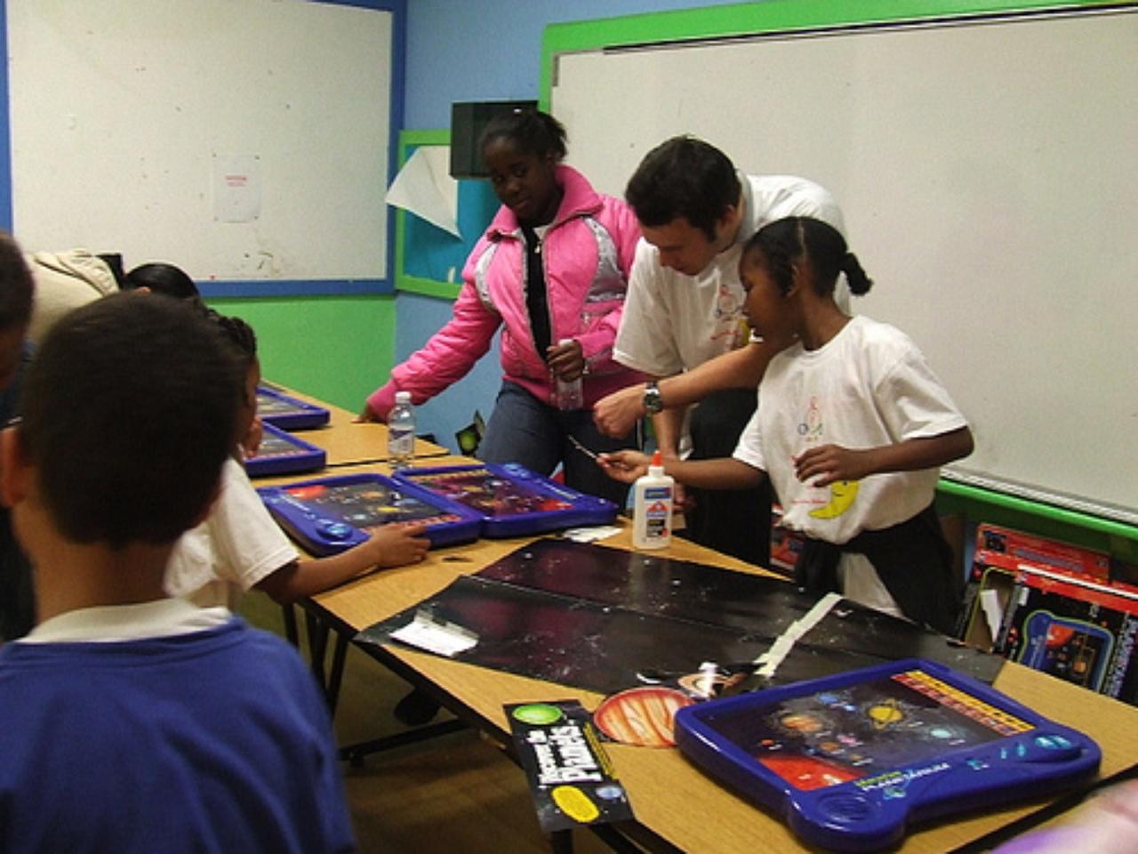 Children at Victor Scott Primary School in Hamilton, Bermuda, participating in the Bermuda Eclipse event activities.