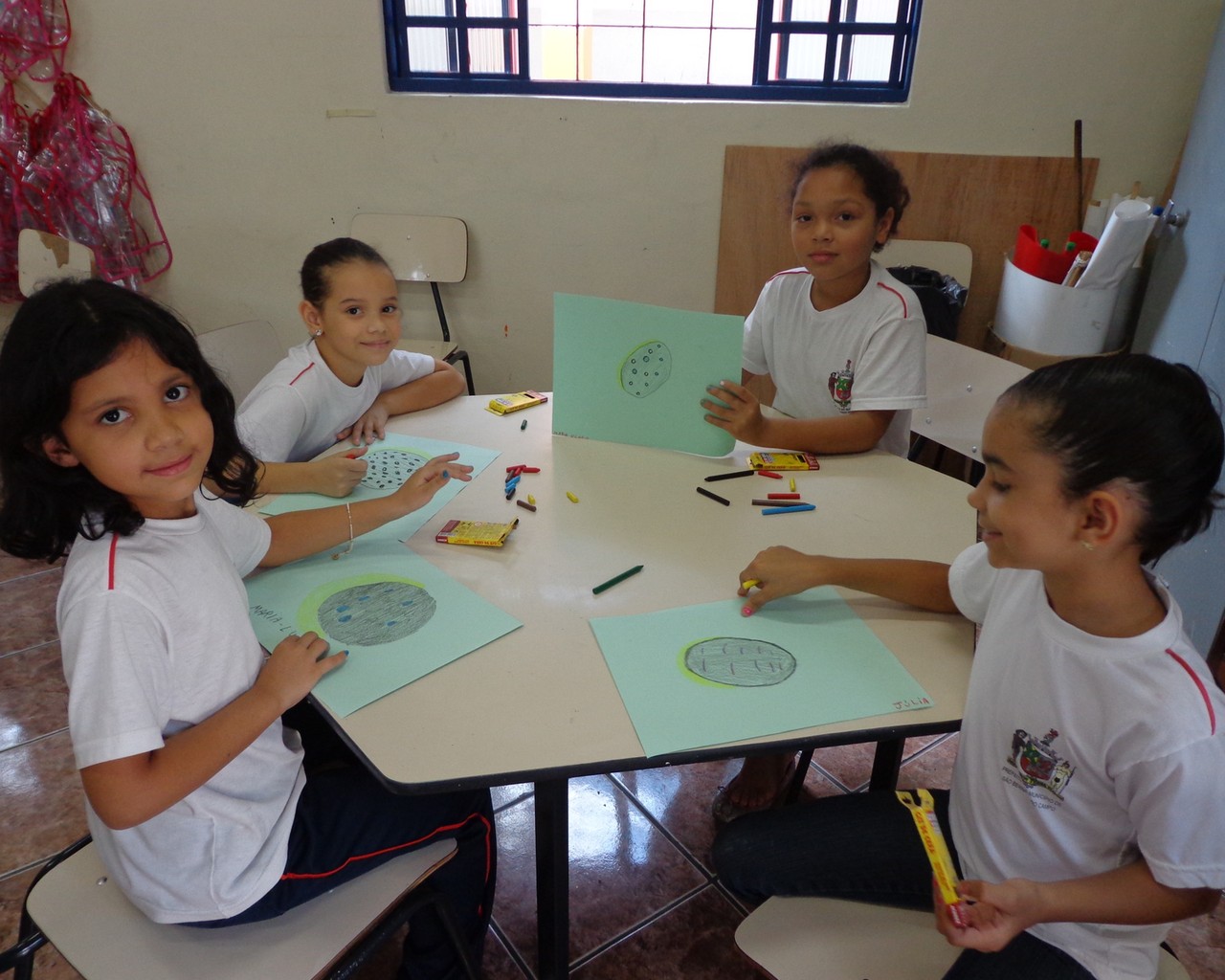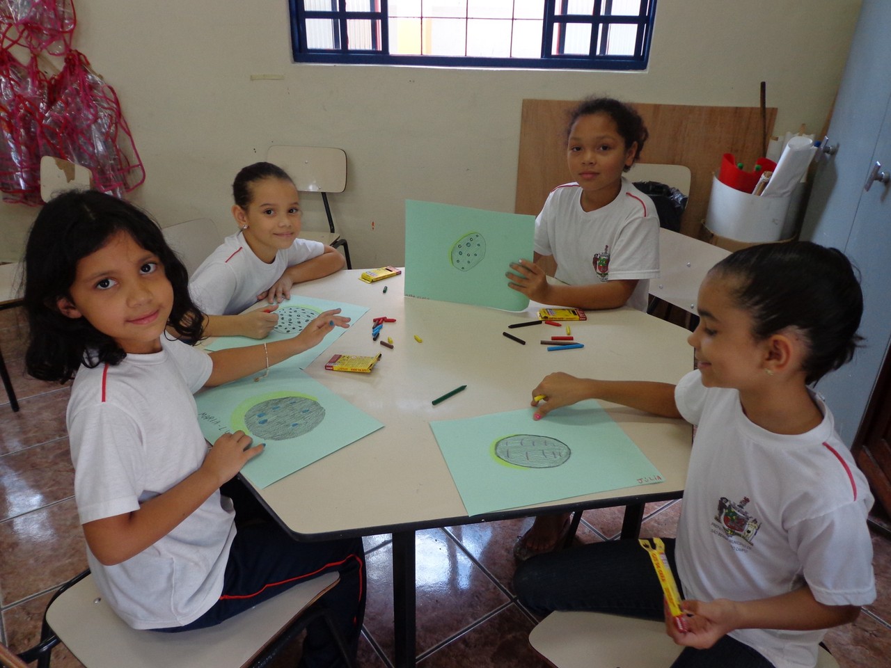 Students of the Viriato Correia public school in Sao Paulo, Brazil, taking part in the UNAWE Deadly Moons activity in May 2013.