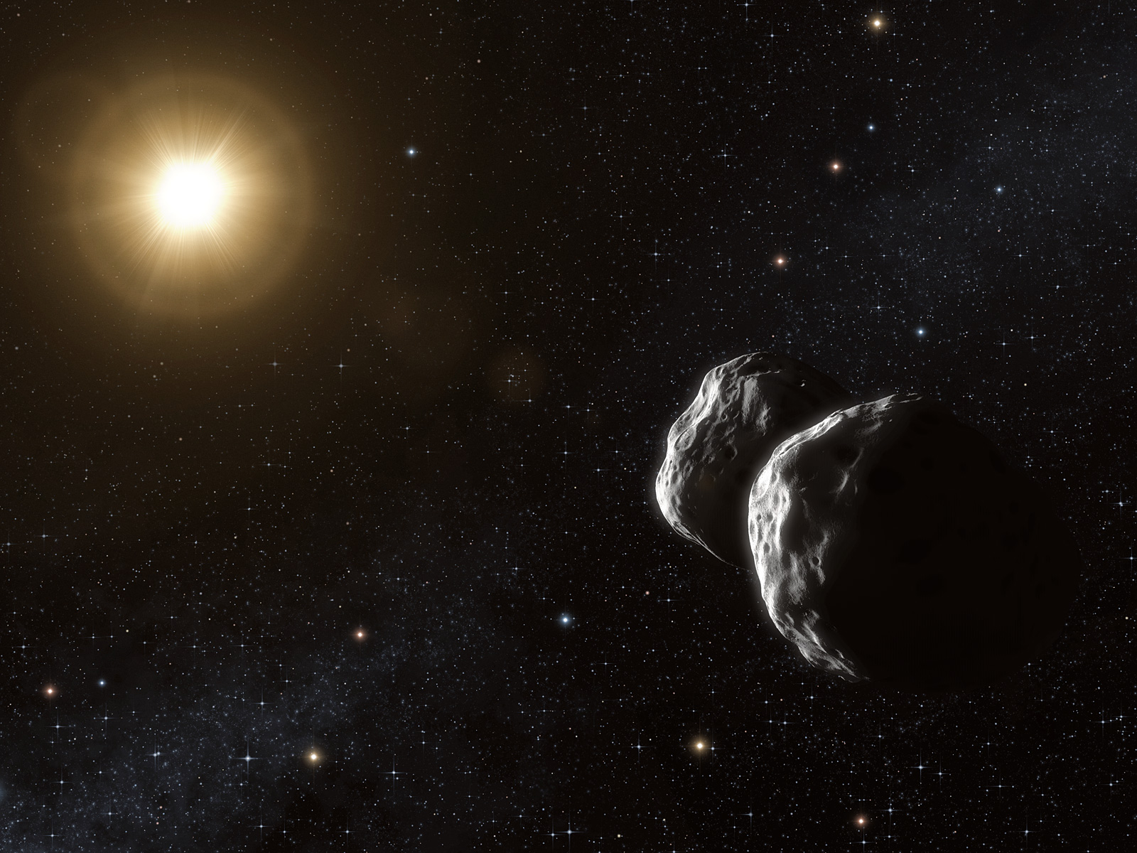 This picture is an artist's drawing of an asteroid, similar to an asteroid that was recently spotted in Jupiter's. It turns out this asteroid is an immigrant that has moved-in from a different Solar System!