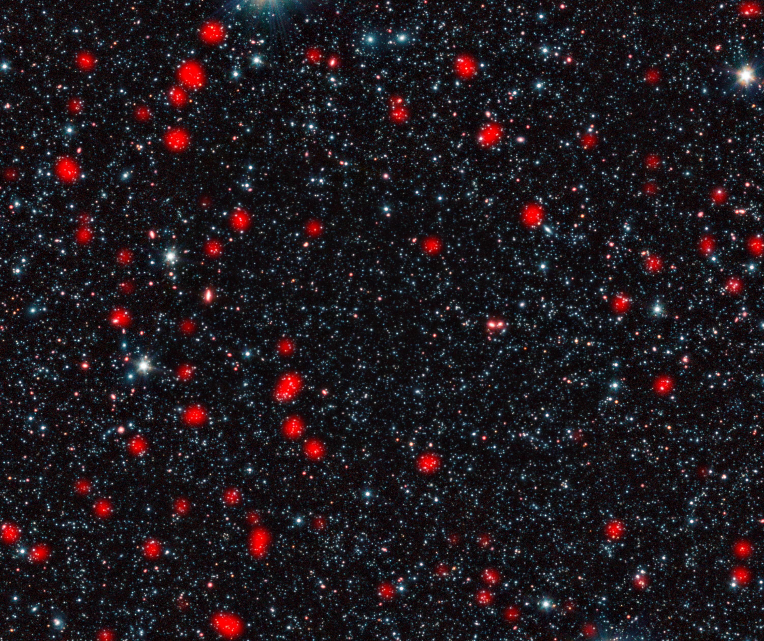 Some of these galaxies are especially interesting to astronomers and they have been highlighted in red in this new space picture. When the Universe was very young, the galaxies that have been highlighted were in a star-making frenzy, which is called a starburst. These starbursts didn’t last long and this is what astronomers are interested in: What put a stop to this rapid star production?