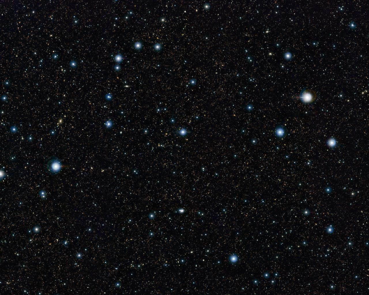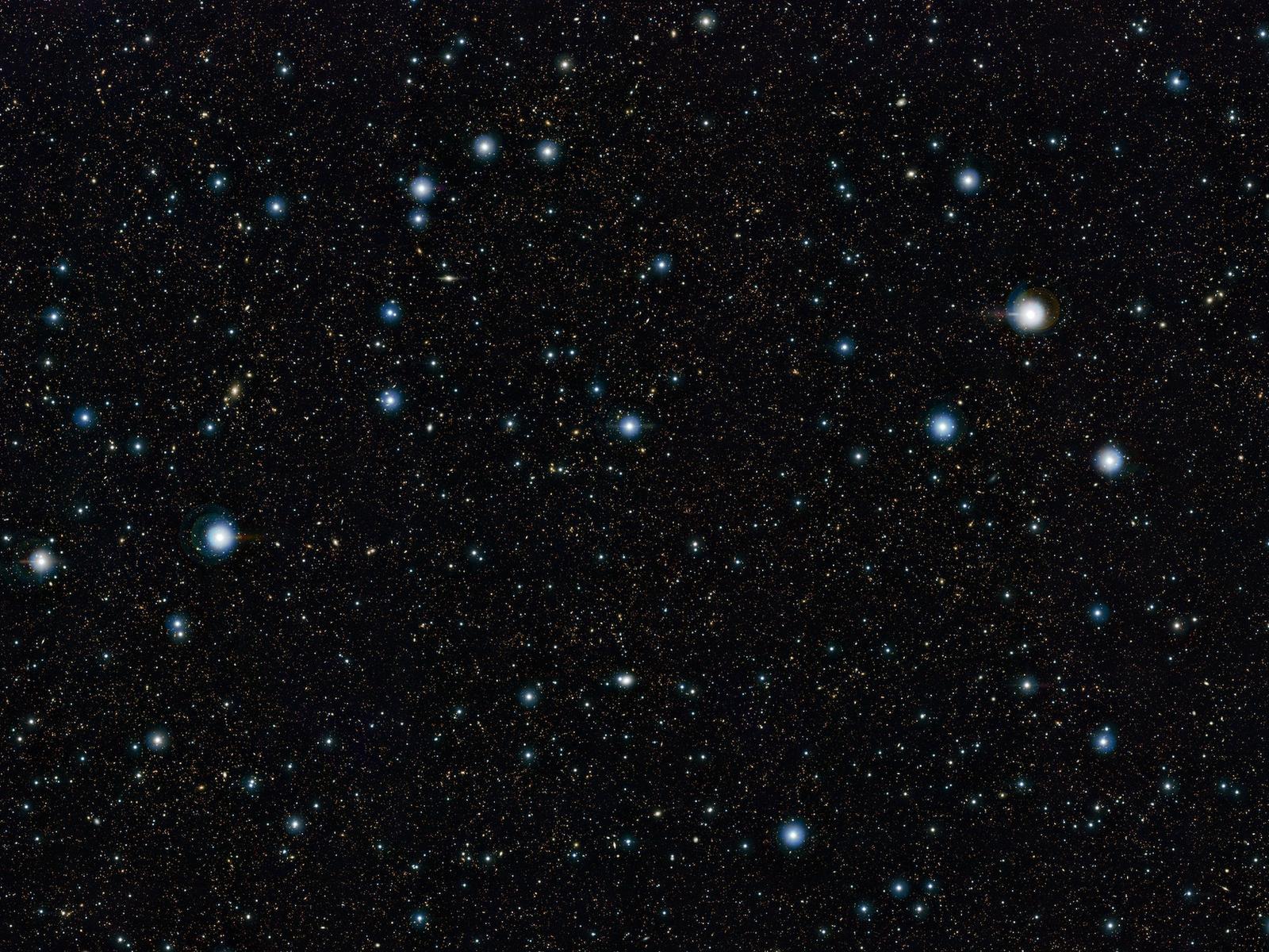 At first glance this new space photo doesn’t look very special, just a few bright stars and a sprinkling of fainter ones. But in fact almost all of those fainter objects are not stars in our Galaxy, the Milky Way. They are actually very remote galaxies, each containing billions of stars!