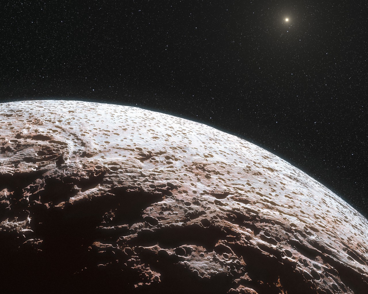 Makemake, a dwarf planet in our Solar System, appears to have no atmosphere; it is bald! This means it’s not able to hold on to the few sunrays it receives at its distant location, which is even farther away from the Sun than its cousin, Pluto.