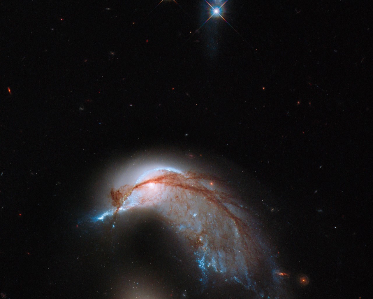 This space photograph shows a pair of interacting galaxies ripping each other apart with their mutual gravity.