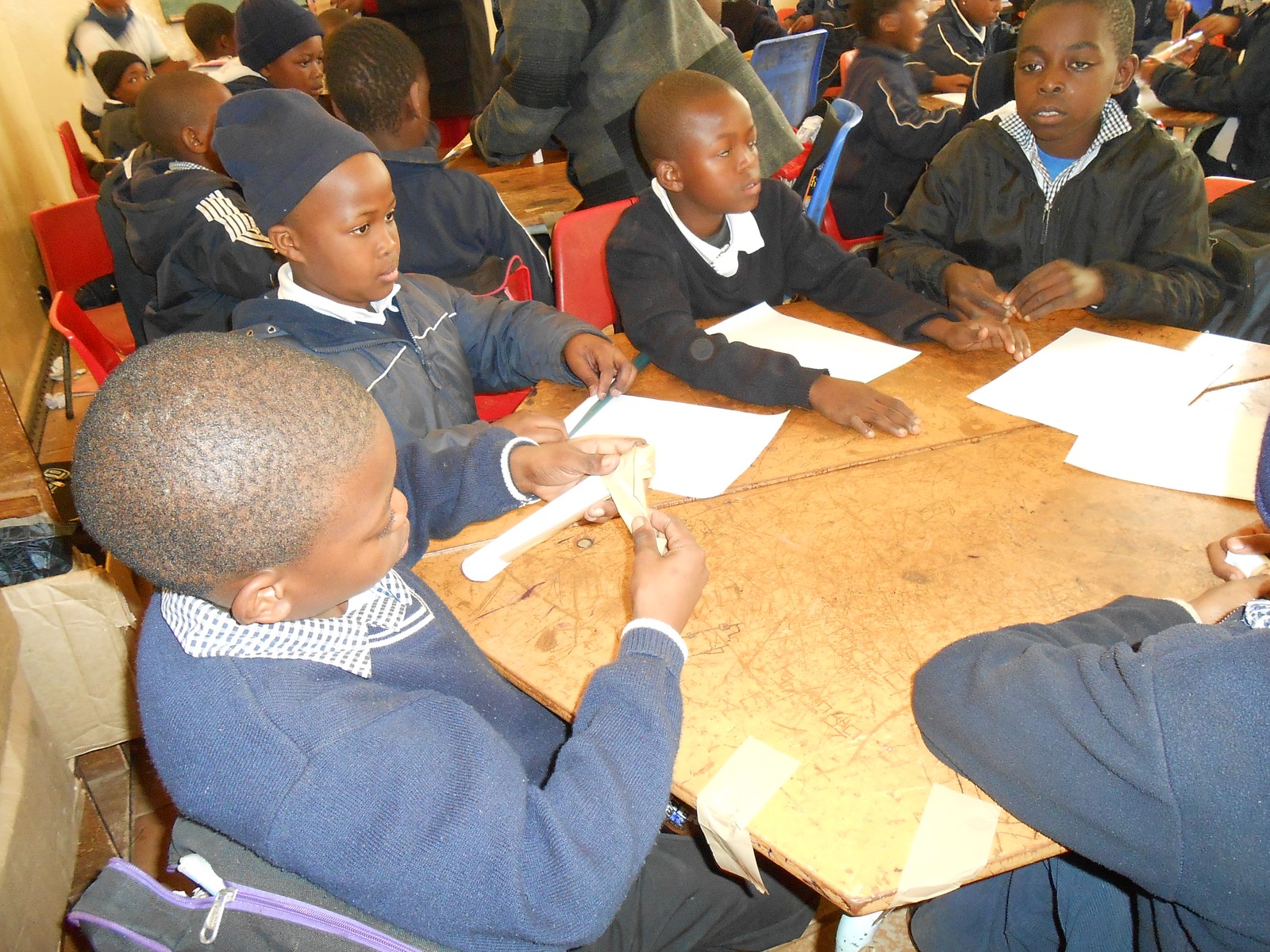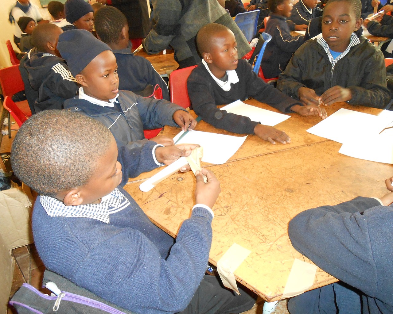 Learners at St Mary's working in groups to make a rocket