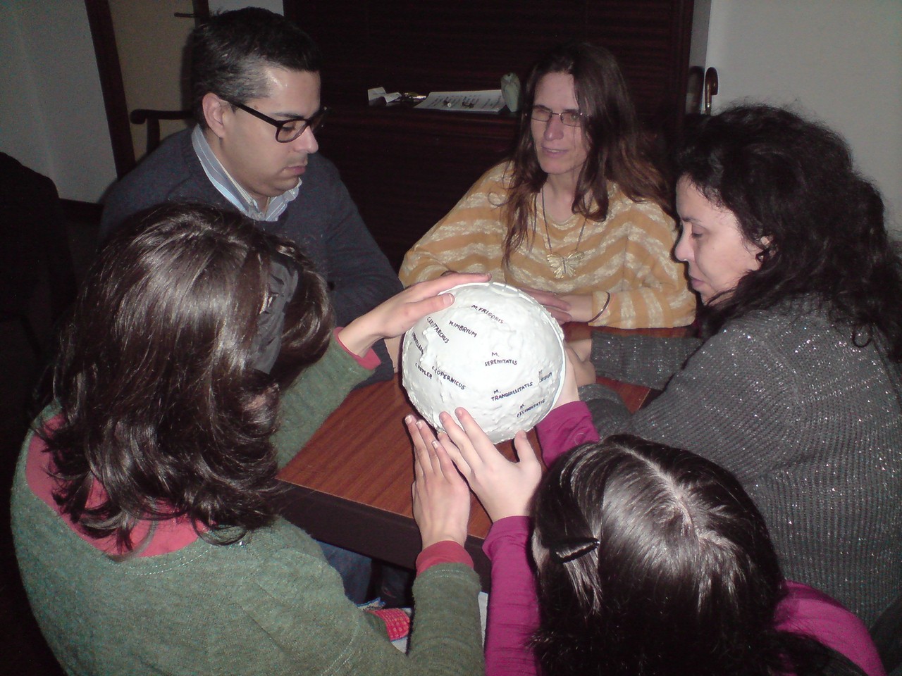 A group of visually impaired adults get their first glance of the Moon thanks to the global UNAWE project, A Touch of the Universe.