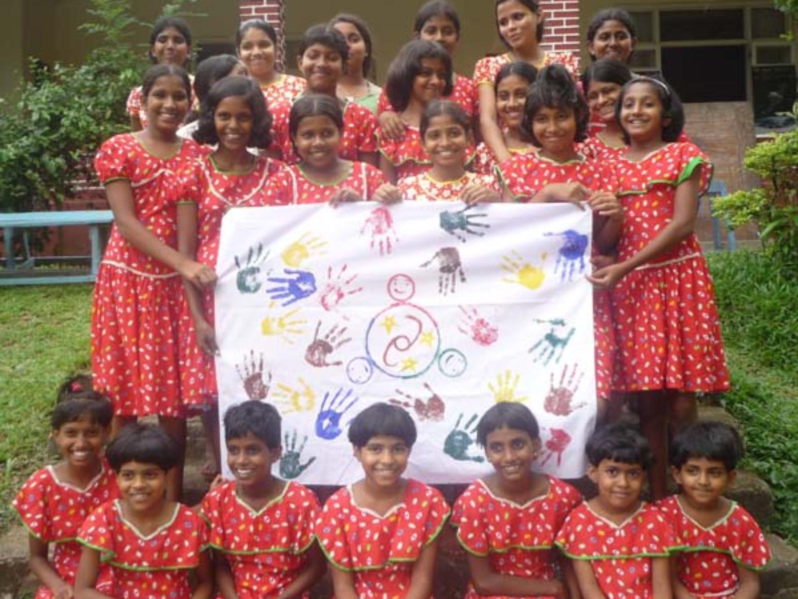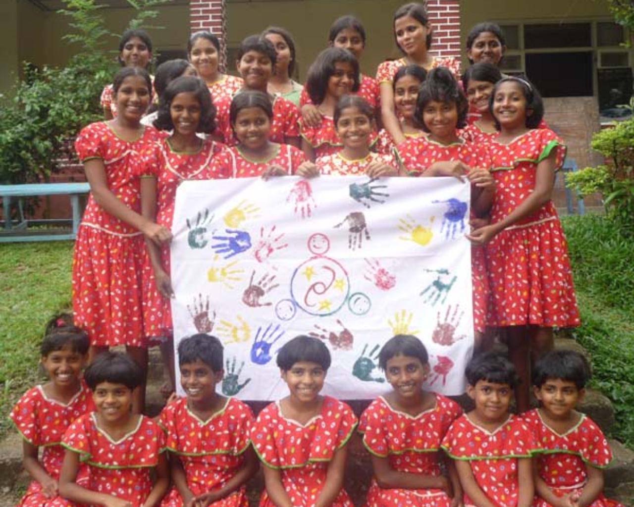 Girls from a Sri Lankan Orphanage hold a hand-made UNAWE banner. To celebrate his 24th “orbit around the Sun,” UNAWE Sri Lanka coordinator Thilina Heenatigala visited this orphanage and held astronomy outreach activities for the day.