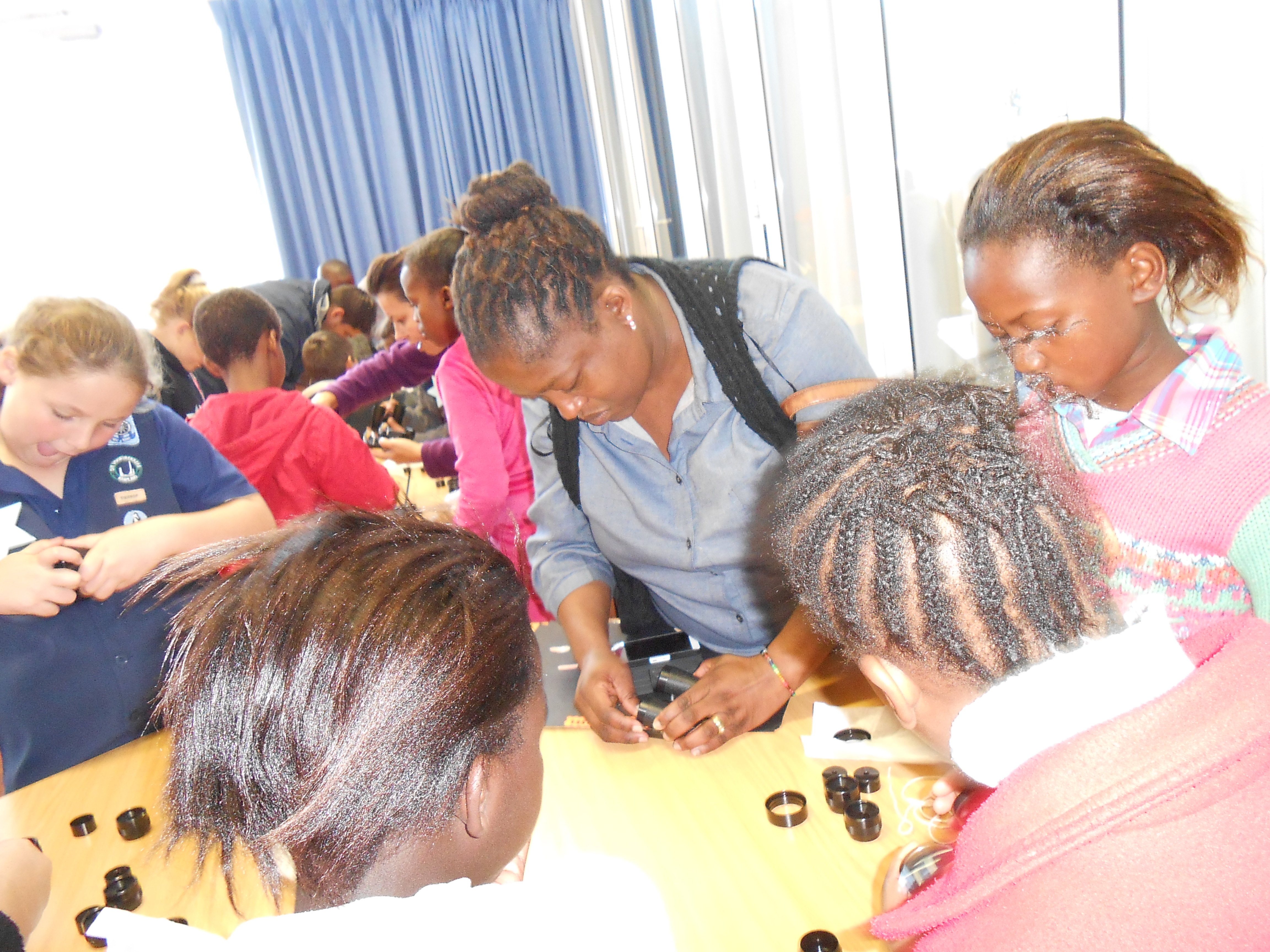 Zodwa, an educator from Lwandla Primary assisting children with their practical activities